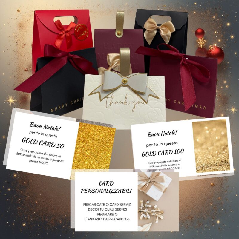 Le Gift Card Prepagate H&CO LAB da 50€ , 100€ oppure personalizzate con l importo che desideri, sono utilizzabili per qualsiasi servizio o prodotto e senza scadenza.